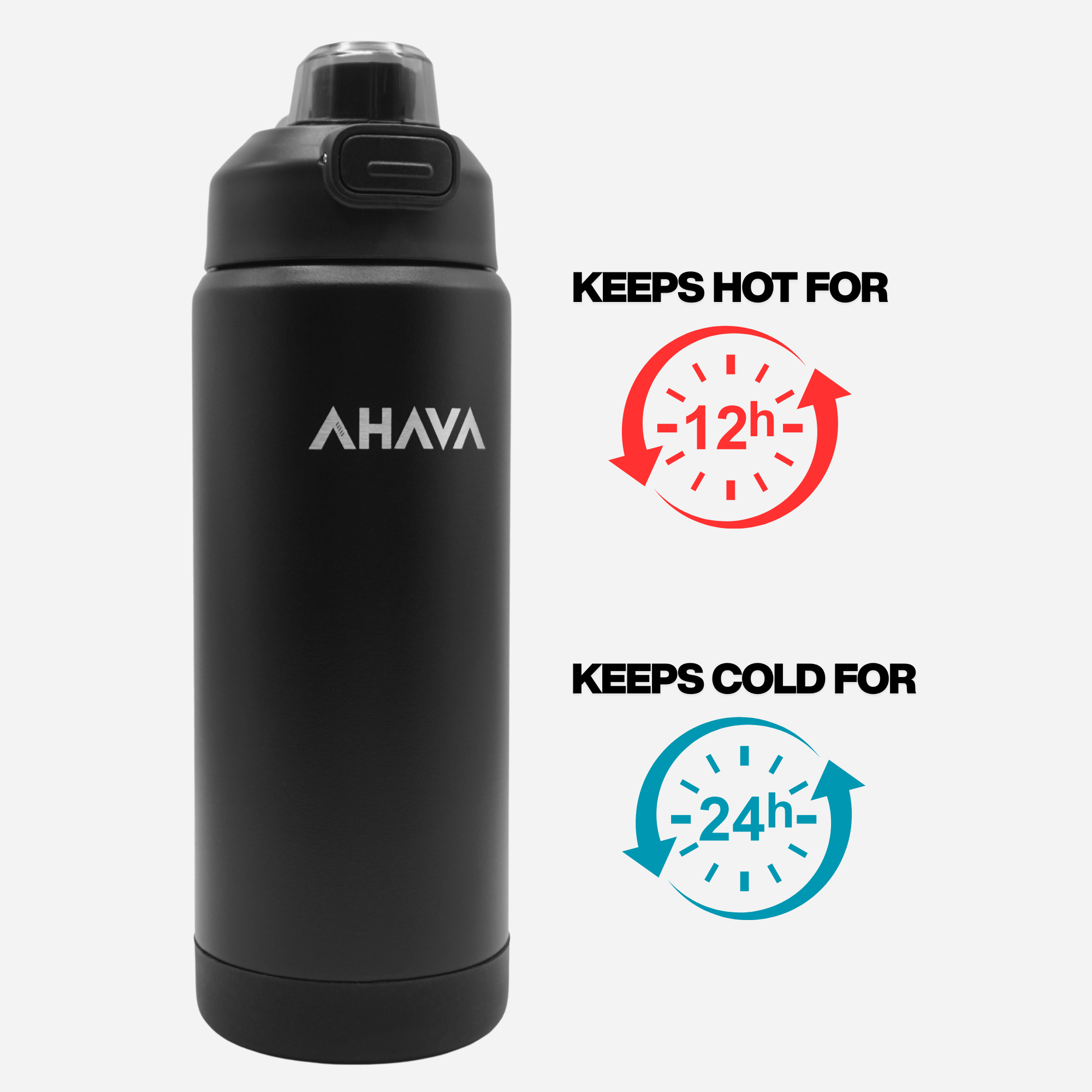 The AHAVA StayCool Bottle keeps your beverages hot for up to 12 hours and cold for 24 hours, ensuring optimal temperature all day.